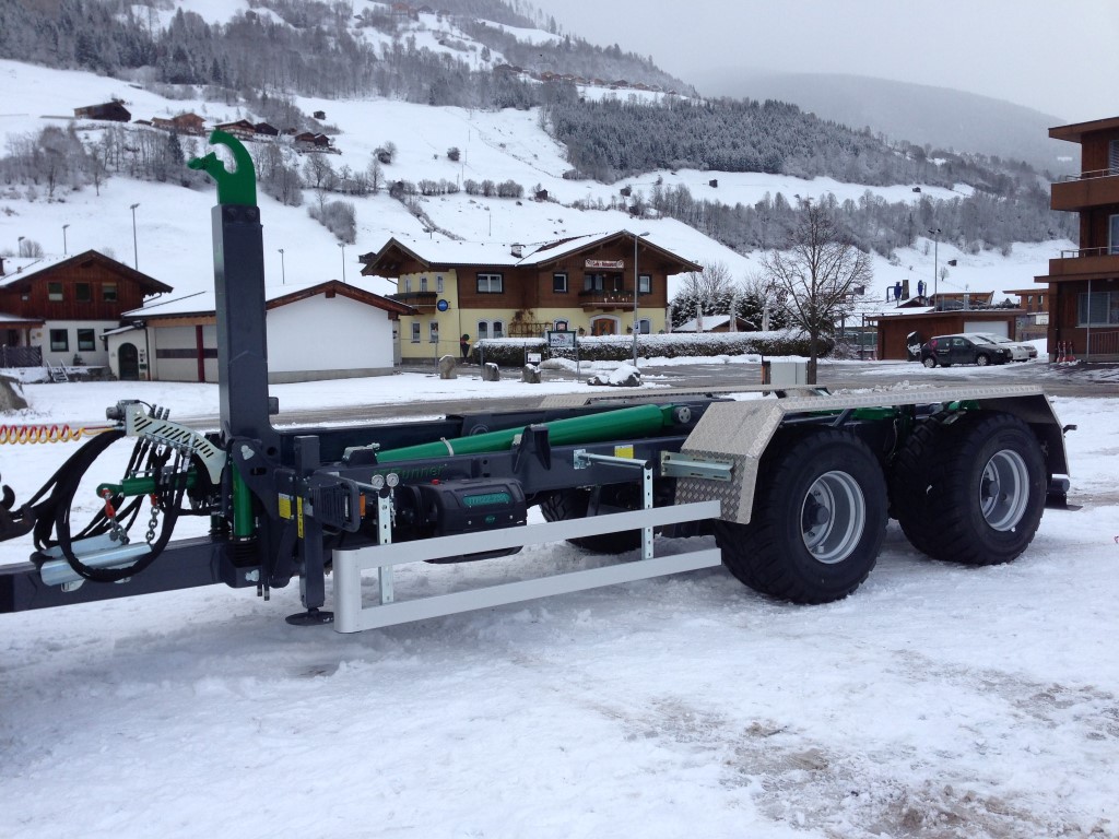 Übergabe eines ITRK 18.23/6 Tandemhakenlift mit Lenkachse, hydraulischem Fahrwerk, Load Sensing, Funkfernbedienung uvm. samt Container nach 5542 Flachau ( Salzburg )